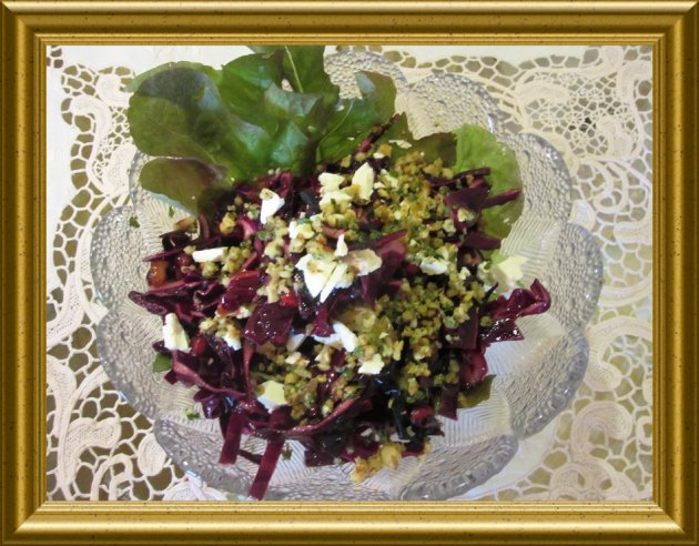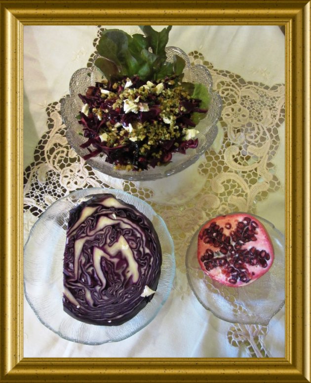 Rotkohlsalat mit Datteln und Hirtenkäse |