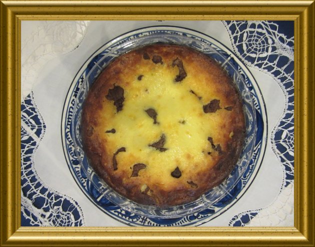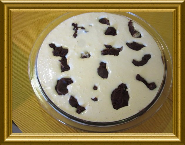 | Anschliessend aus dem restlichen noch rohen Mürbeteig Teigstücke abreissen bzw. abzupfen und diese beliebig in die Quarkcréme setzen. | ||