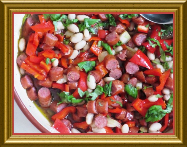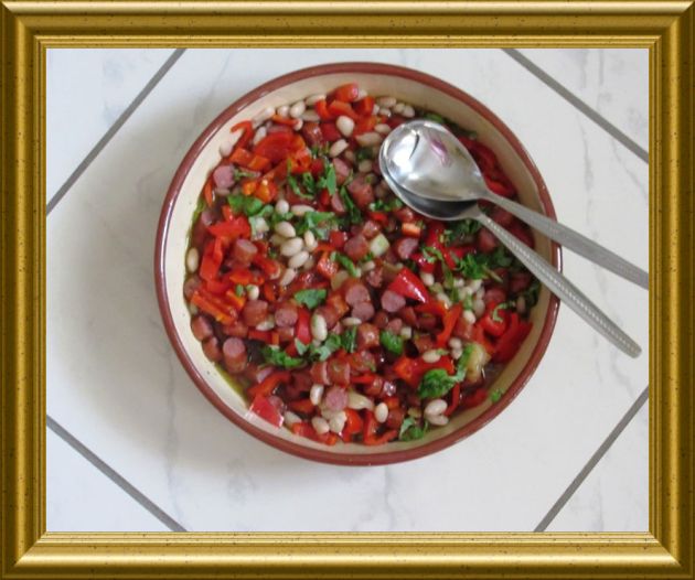 Salat mit dicken Bohnen und Debreczinern