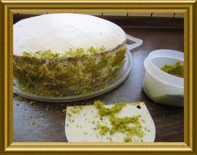 | ca. 50 g fein gemahlene Pistazien oder Mandelblätter oder Krokant oder Schokostreusel/-raspeln | für den Rand verwenden. | |
