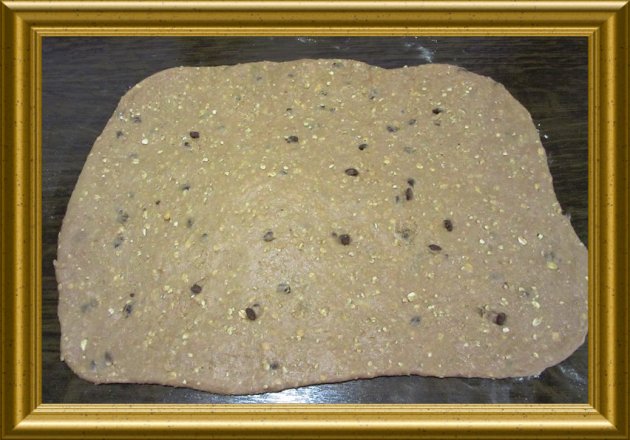 | Nun den Teig noch einmal durchkneten und anschliessend zu einem Rechteck von ca. 50 x 35 cm ausrollen.