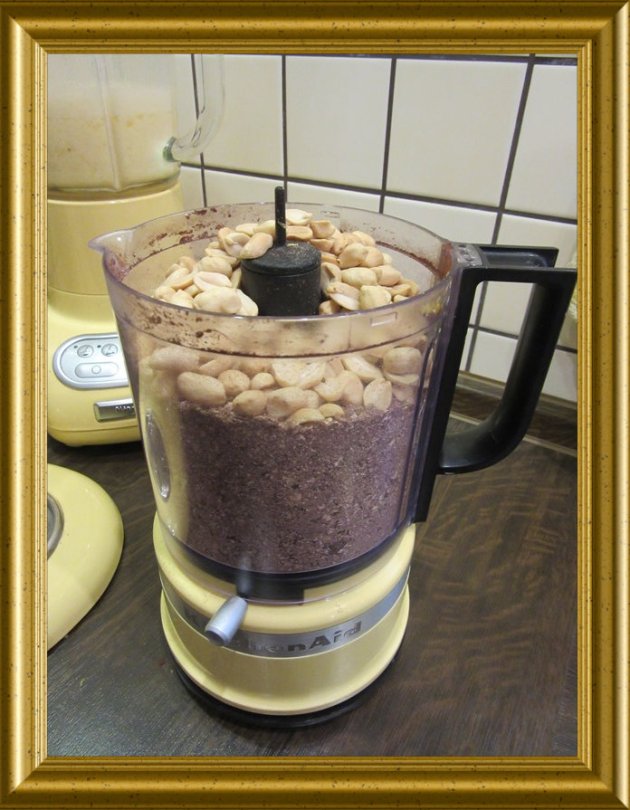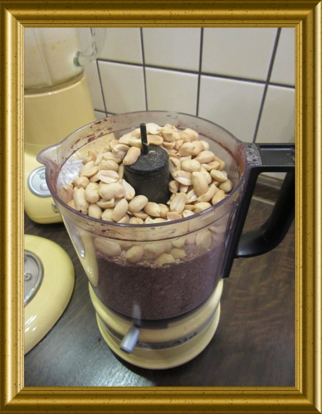 | 200 g Erdnüsse | in einer heissen Pfanne ohne Fettzugabe leicht anrösten.
