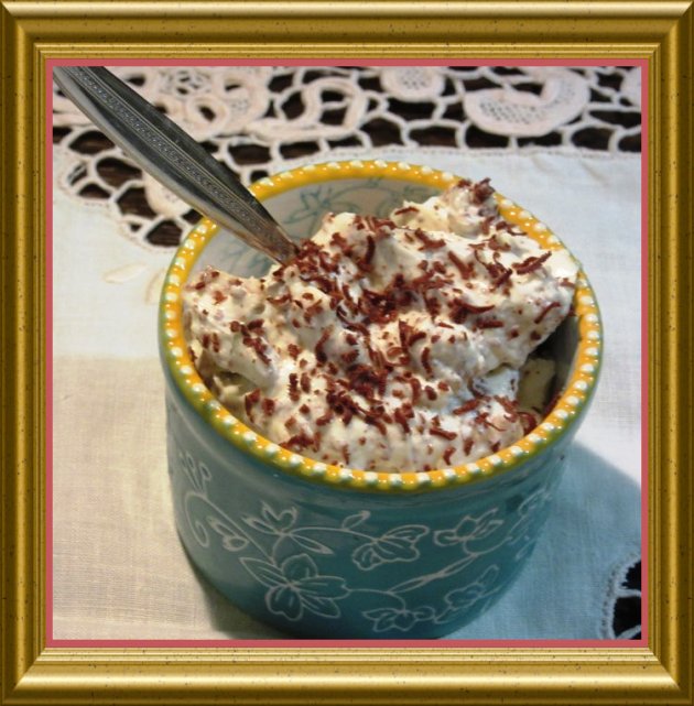 | 40 g Edelbitterschokolade | geraspelt verrühren. Mit | |