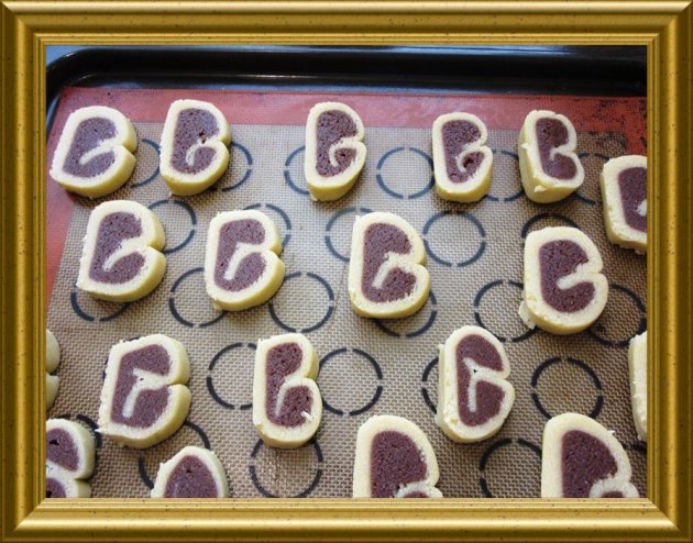 | Danach die Rolle aus der Folie wickeln und in ca. 1 cm dicke Scheiben zu Plätzchen aufschneiden.