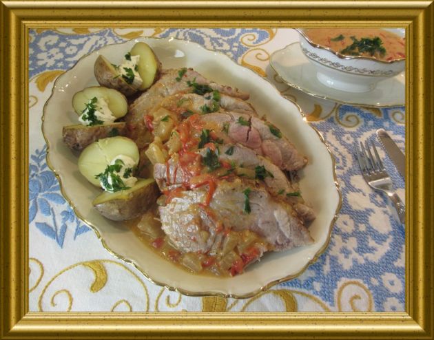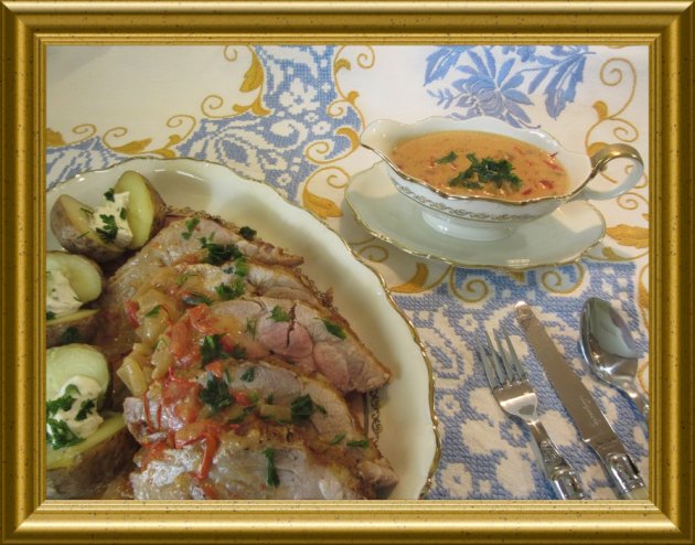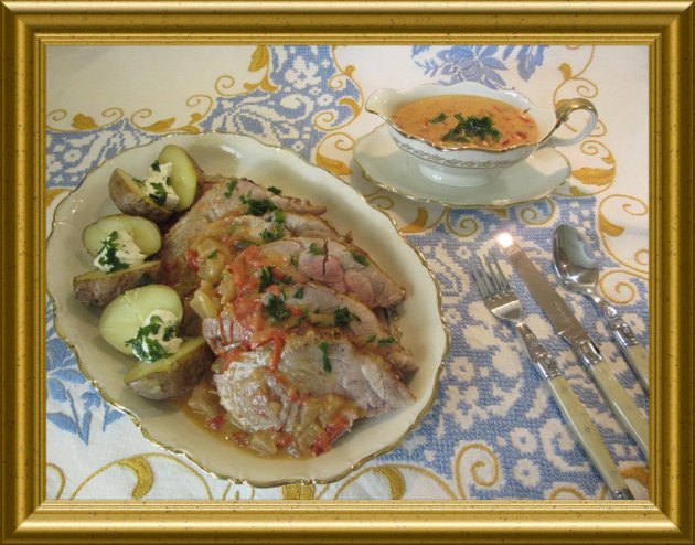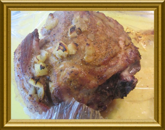 Schweinekamm mit Senfgurken aus dem Bratenschlauch |