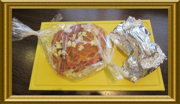 | Einen Bratenschlauch passend der Grösse des Schweinekammstückes vorbereiten und bereit legen. | ||