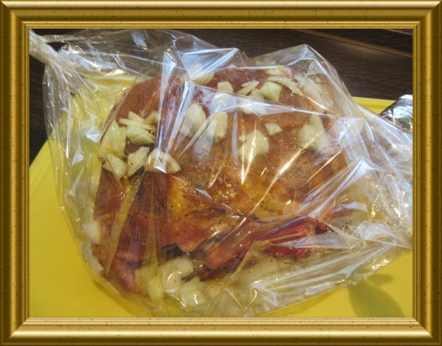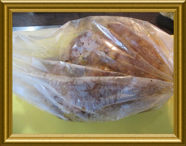 | Das so vorbereitete Fleischstück in den Bratenschlauch geben. | ||