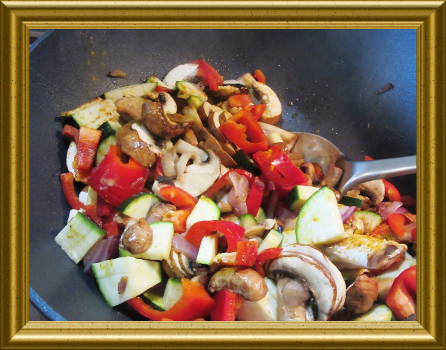 | 2 kleine Zucchini | vorbereitet, in mittelgrosse Würfel geschnitten sowie | |