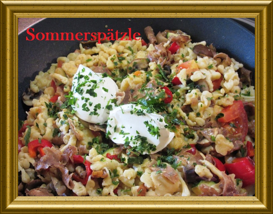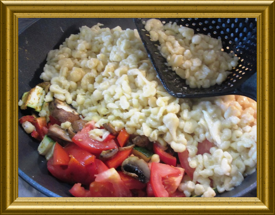 | Zum Schluss die gegarten Spätzle untermengen und mit | ||