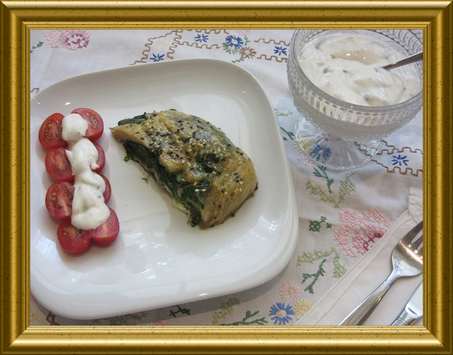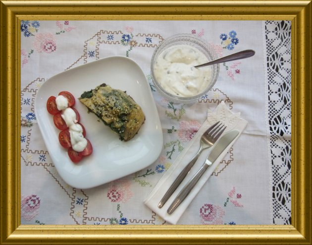 | Hierzu reiche ich einen Joghurt-Dip und Tomatensalat mit oder ohne Oliven. | ||