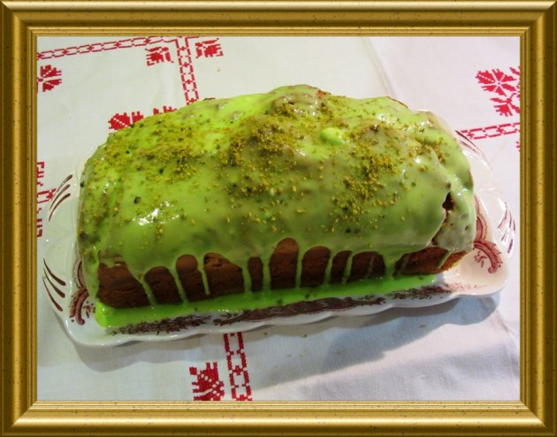 | 30 g Pistazien | sehr fein gehackt bestreuen. | |