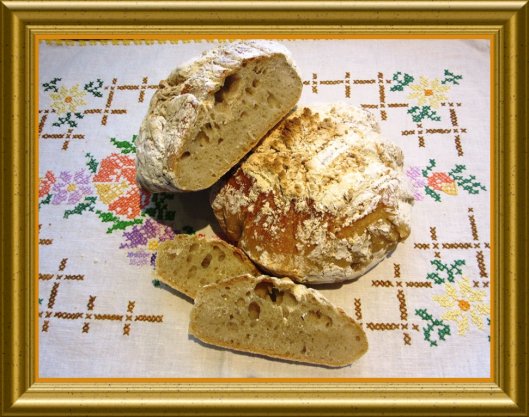 Aber ich nehme auch mal eine Kastenform oder lasse den Brotlaib auf dem Blech oder auf dem heissen Pizzastein backen.