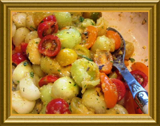 | 16 Cocktailtomaten | nach Belieben häuten und halbieren. Aus | |