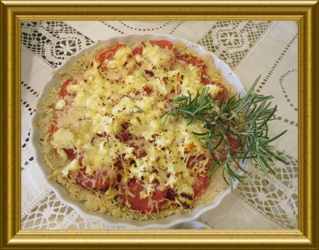 Die Tomatenscheiben auf dem vorgebackenen Boden verteilen.