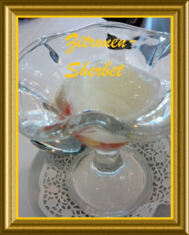 | Das Sherbet vor dem Servieren aus dem Tiefkühlfach nehmen und für ca. 15 Min. in den Kühlschrank stellen. Damit es leicht antaut und seinen Geschmack voll entfalten kann. | ||