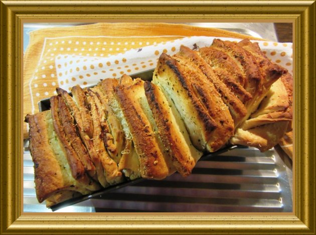 | Nach dem Backen das Zupfbrot auf einem Kuchengitter gut auskühlen lassen. | ||